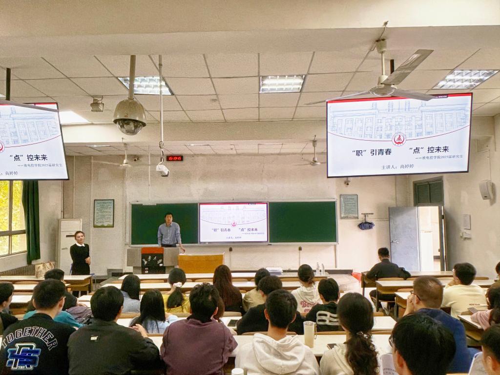 在南校区举行2025届毕业生就业指导会。学院党委副书记高婷婷,研究生辅导员王博、陈凡,2025届全体研究生毕业生参加。会议由辅导员刘平利主持。