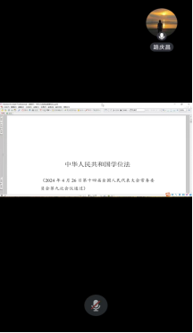 二、由路庆昌副院长领学了《中华人民共和国学位法》。2024年4月26日,第十四届全国人民代表大会常务委员会第九次会议表决通过《中华人民共和国学位法》,自2025年1月1日起施行。这是我国学位法律制度的首次全面修订,是学位工作和教育法治建设的一项重大成果,意义重大、影响深远。