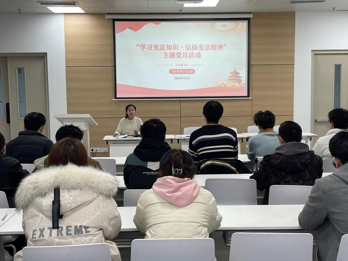 交控本科生党支部于12月4日在216会议室开展了“学习宪法知识·弘扬宪法精神”主题党日活动。本次活动由党支部书记李慧主持,全体党员参加。