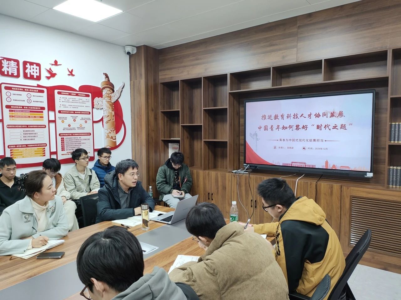 为引导支部党员提高政治觉悟,积极投身国家发展大局,为实现教育强国目标贡献力量,成人网 卓越本科生党支部于12月4日在327会议室开展专题学习会议,邀请学院党委书记贺炳彦讲授题为“推进教育科技人才协同发展 中国青年如何答好‘时代之题’”的专题党课,学院党委副书记高婷婷、党支部书记张馨月、党支部副书记刘平利及全体党员参会。