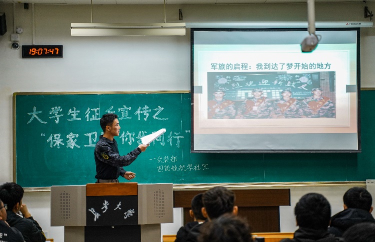 武装部指导国防领航学社于4月2日在明远WM1309教室开展了以“保家卫国、你我同行”为主题的征兵宣讲活动。本次宣讲活动由成人网