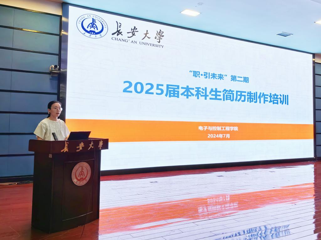 在北辰楼会议中心二层报告厅举行“职·引未来”(第2期)——2025届本科生简历制作培训会,辅导员许必颖担任主讲,辅导员张馨月及2025届全体本科生参加。