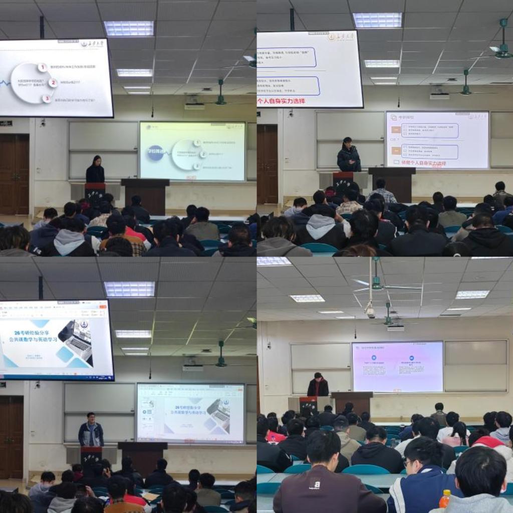 研究生会联合青年思想教育中心于11月28日下午在WT1104教室举办了“携手研梦·互助前行”考研经验分享会。本次分享会邀请了2024级研究生孙照辉、胡鑫杭、周卓雅、柴德培、于骁作为主讲嘉宾。研究生辅导员王佩佩、2022级本科生参加。