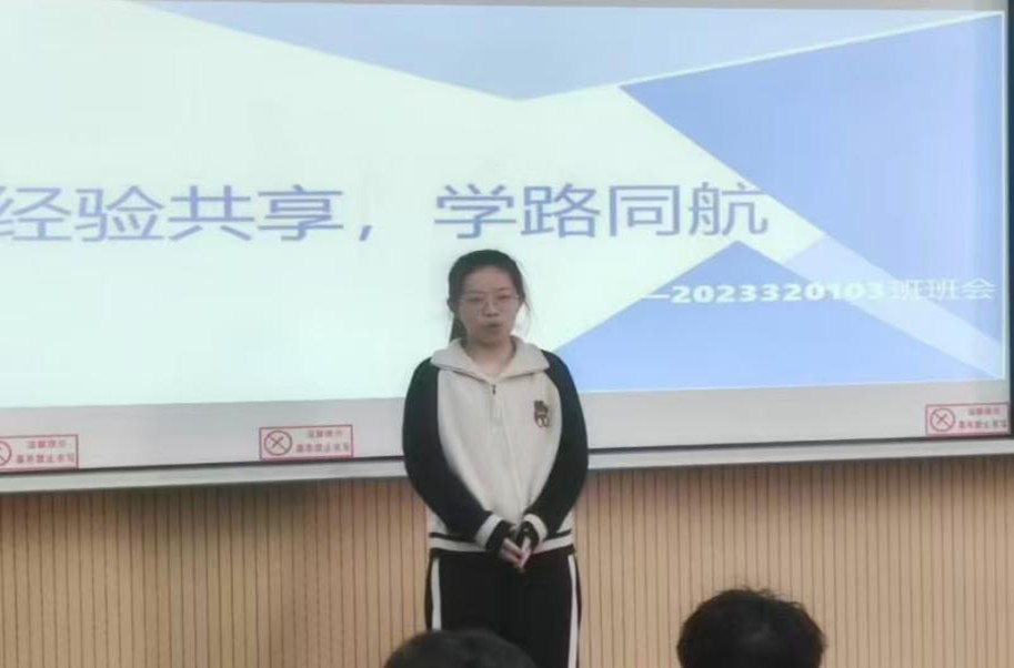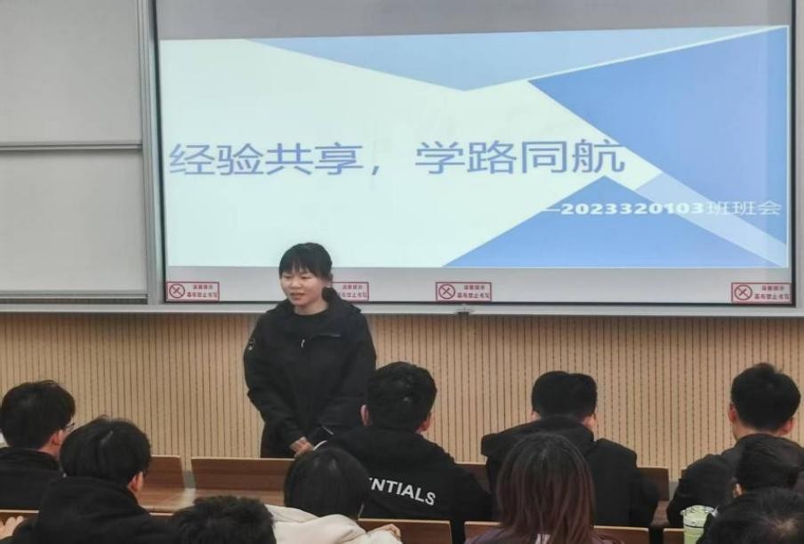 2023320103班在渭水校区WX2103教室召开“经验共享,学路同航”学习经验分享会暨主题班会。班主任孟芸及班级全体成员参加。