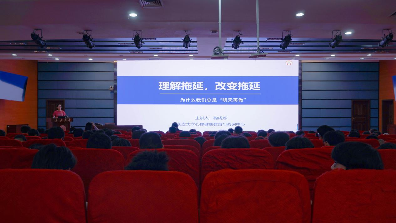 心理健康教育与咨询中心专职教师鞠成婷担任主讲人,面向学院2024级全体学生开展“理解拖延,改变拖延”心理健康讲座。