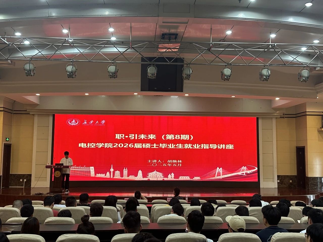 在南校区北院学术交流中心报告厅组织开展了“职·引未来”(第8期)——2026届硕士毕业生就业指导讲座。本次活动特别邀请了法士特研究院综合管理室主任胡煥林做讲座,学院党委副书记高婷婷及2026届全体硕士研究生参加,讲座由研究生辅导员王佩佩主持。