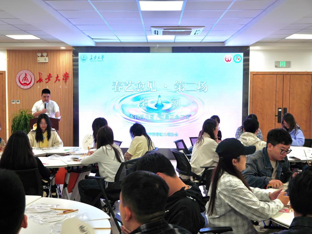 彩虹心理协会于朝晖园团体活动室顺利开展“春艺愈见”表达性艺术疗愈系列工坊第二场活动——“染·一刻”水拓画正念工坊。本次活动由学院心协主席韩喆主持,覆盖本硕各年级学生。