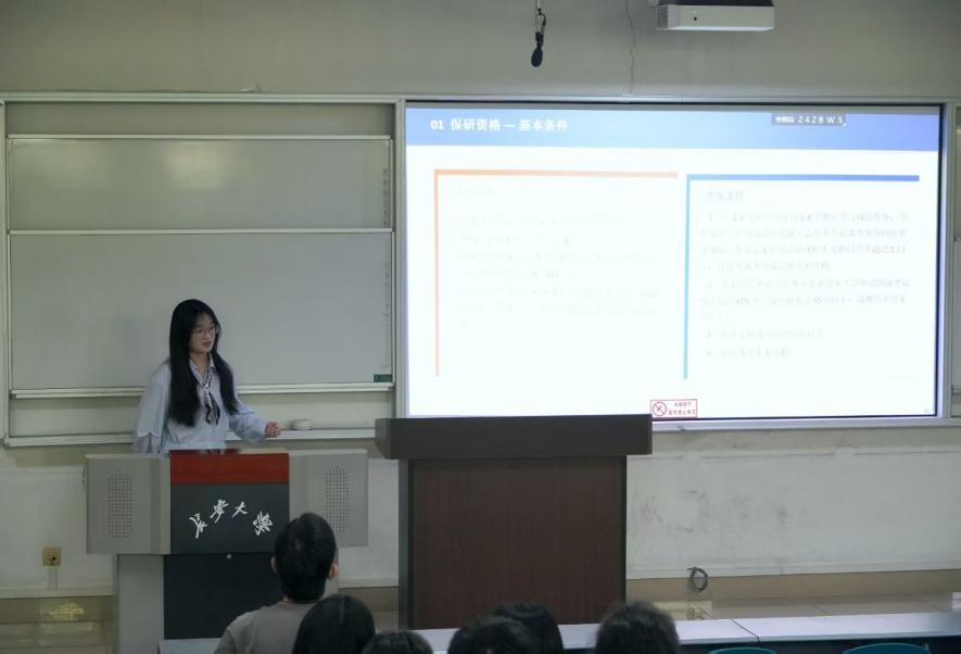 四位同学的分享内容翔实、针对性强,涵盖了从前期准备、复试考核到志愿填报的关键环节,现场气氛热烈,掌声不断。与会同学纷纷表示,通过学长学姐的“现身说法”,对保研路径有了更清晰的认知,也增强了信心与方向感。