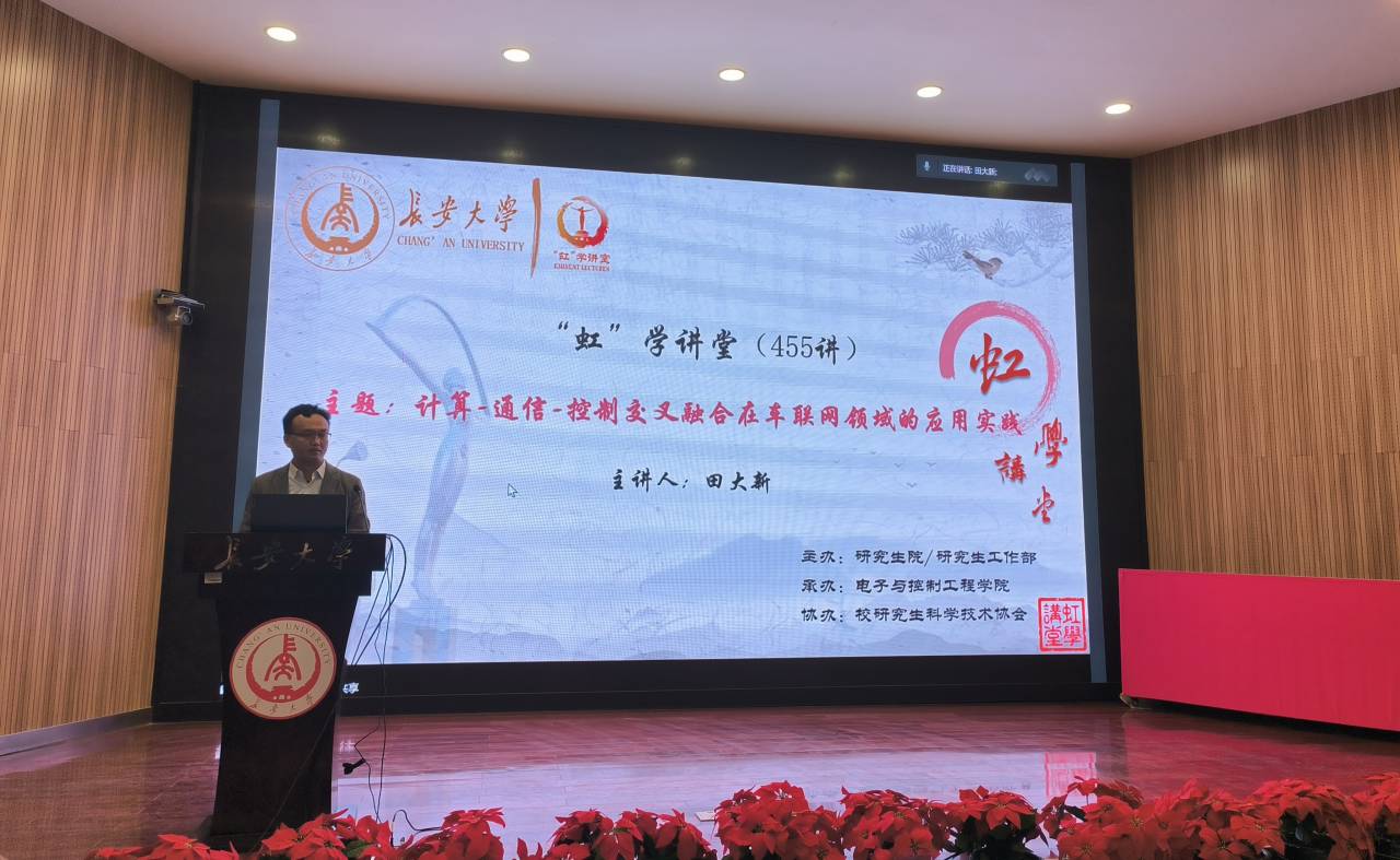承办、校研究生科学技术协会协办的“虹”学讲堂第455讲以线下讲座形式顺利举办。北京航空航天大学田大新教授作了题为“计算-通信-控制交叉融合在车联网领域的应用实践”的报告,相关学院近300名师生参加讲座。