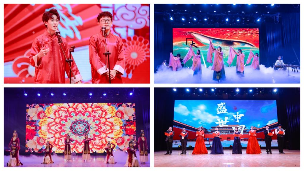 整场晚会青春洋溢、气氛热烈,歌舞飞扬、精彩纷呈。晚会在活力四射的开场舞《青春就这YOUNG》中拉开帷幕。相声《我的大学生活》分享了新生进入大学以来的种种“奇遇”,幽默的话语令人忍俊不禁。古典舞《大鱼》在钢琴和古筝的合奏中彰显了中国传统文化的独特魅力;情景诵读《传承》带领我们领略了诗书礼易的博大精深,体现了新时代大学生坚定的文化自信。民族舞《丝路印象》用曼妙婀娜的舞姿为我们展示了中国与“一带一路”沿线国家之间的深厚友谊;歌曲《海芋恋》《曾经的你》《不为谁而作的歌》《如愿》用优美的歌声唱出了对祖国的热爱和对青春的礼赞。歌曲串烧《致电青春》和舞蹈串烧《舞动未来》让人感受到了音符和舞姿所带来的温暖与力量;教师朗诵《盛世中国》赞颂伟大的党和伟大的祖国,诵出了教育报国的赤诚情怀;学院全体学生工作干部演唱的歌曲《不忘初心》,唱出了“为党育人、为国育才”和“躬耕教坛、强国有我”的使命担当,将晚会氛围推向了高潮。