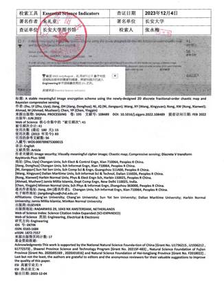 教师朱礼亚作为第一作者的论文“A stable meaningful image encryption scheme using the newly-designed 2D discrete fractional-order chaotic map and Bayesian compressive sensing”入选ESI高被引论文,成人网