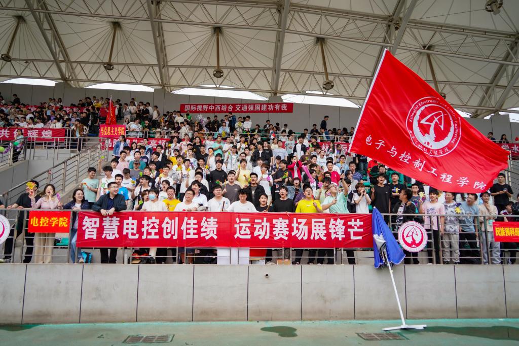 学子奋力为运动员们摇旗呐喊、擂鼓助威。经过全体师生共同努力,成人网