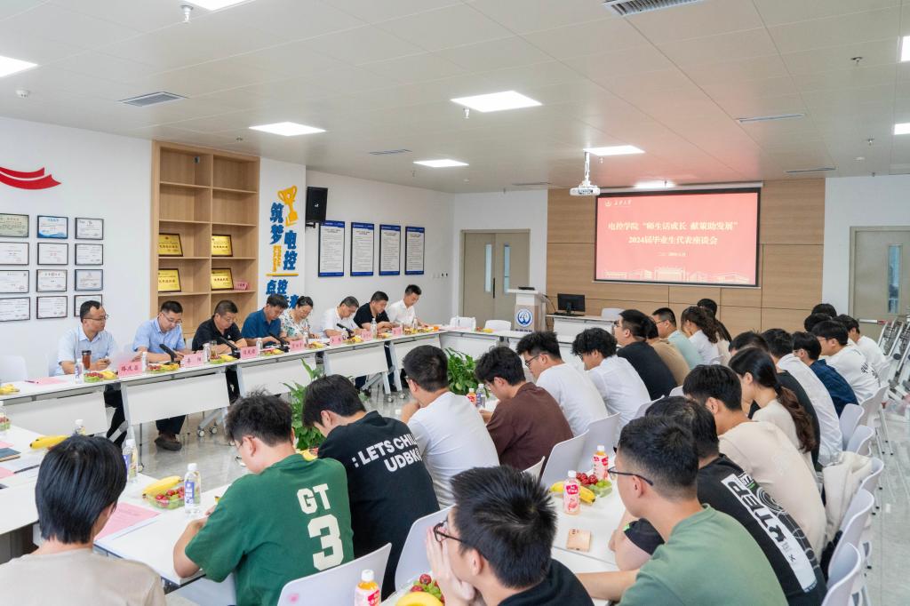 在北校区明德园智通大厦学院创新创业基地召开“师生话成长 献策助发展”2024届毕业生代表座谈会。学院领导班子全体成员、各系(中心)负责人、毕业班辅导员和20余名2024届毕业生代表参加座谈会。会议由学院党委副书记李阳主持。