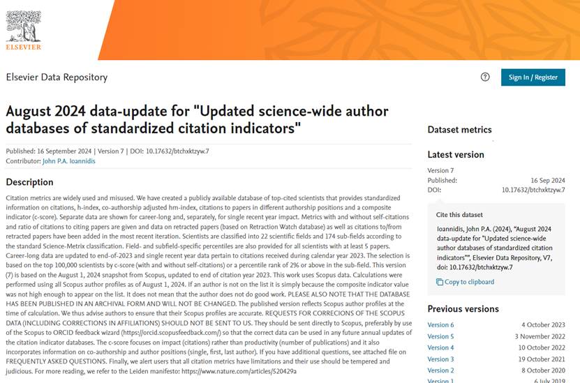 9月16日,由斯坦福大学John P. A. Ioannidis教授团队发布的全球前2%顶尖科学家榜单更新了2024年榜单,成人网